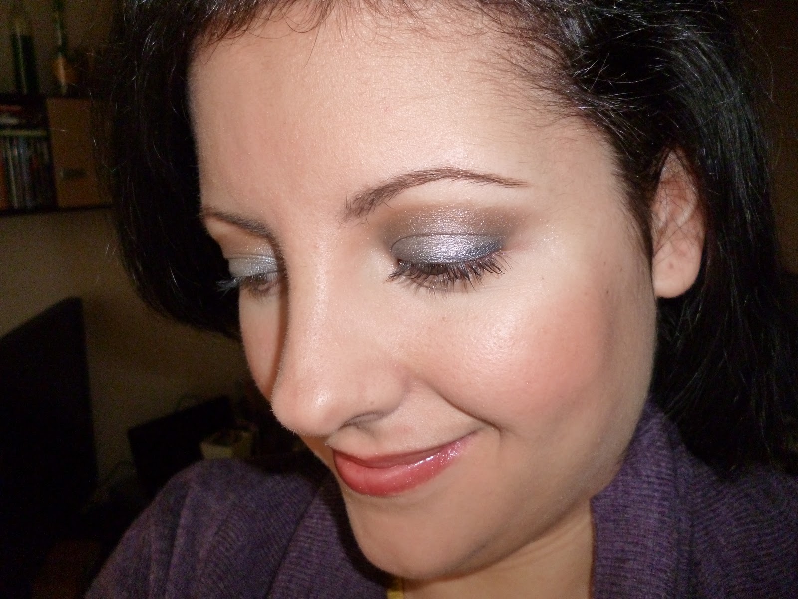 This is my make-up for the day. Maybe metallic grey and matte chocolate brown seem to be a funny combination but the result is convincing. This is my daytime version of accentuated make-up on the eyes.